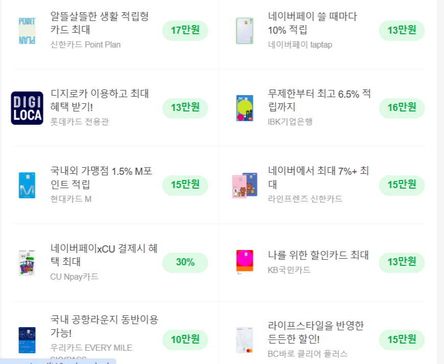 글쓴이가 적립할 때에는 현대카드 5%가 네이버포인트 적립하기 좋은 카드였던 것 같아요.