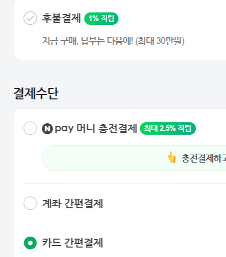 이 방법은 적립율이나 혜택이 좋은 네이버페이 신용카드를 이용한다는 이야기인데요.